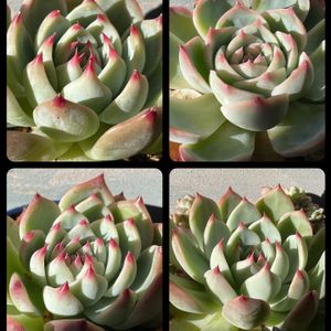 昨日の多肉ちゃん達💕 やっぱり、桃ちゃんズ🍑にシルエットさんが混ざってました😅 でも、見た目ほぼ一緒🤣 私なりに感じた事は、シルエットの方が若干色が薄いのと、葉の形が幅広いって事かな?🤔 ↖️桃太郎錦(奥の葉がわかりやすいかな?) ↙️桃太郎 ↘️桃太郎 2年目 ↗️シルエット 2年目の子以外は、日比谷フェスでリエールさんからお迎えした子です🥰 🏷𓈒錦の日 に参加させていただきますね💕 今日も良い一日をお過ごしくださ〜い🍀