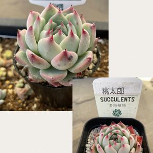 ホームセンターにあった桃太郎。 なんか見た目が変‼️って思って手に取ったらば、斑入りだったのよ~ やった〜❣️って、お迎えしましたよ。 下葉がガビガビになって焦ったけど、綺麗な成長点が展開し始めました✌🏻