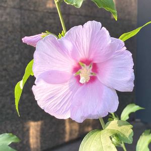 夏の花 木槿 🎐🍧 畳まぬ夕暮れどきに見返り美人💗 どこか 隅っこでも 渇いていませんか? マイヤーレモンが大きくなってきましたので💬 育ったら絞ってさしあげますね𓂃𓈒⟡・🍋.ᐟ