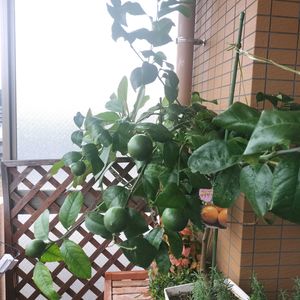 マイヤーレモンの木。今日は風が強くてきっと蝶になったばかりのアゲハが飛ばされまいかと必死にしがみついてた。無事に飛び立つんだよ〜