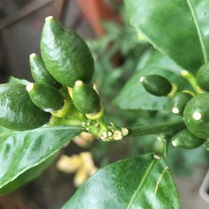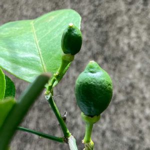 前のpicの続きです。 同じ木の、春に咲いた花からのレモン🍋 可愛いです♡ あまり(ほぼ)葉っぱが無い枝に2つも成ってて、嬉しいけど、余計な栄養を使ってしまうから落とした方がいいのでしょうね。 可愛くてまだ悩みます💧