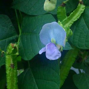 〔野菜の花シリーズ〕四角豆(シカクマメ・うりずん豆)の花 スイートピーに似た淡青色の花が綺麗。 マメ科シカクマメ属の多年草 (日本では冬に枯れるので一年草扱い) 熱帯アジア原産ですが、沖縄だけでなくても出来ます(奈良でも毎年大量収穫) 収穫時期 8月~11月 さやは長さ15cmくらいで、煮たり、炒め物や天ぷらにして食べます。 少し苦味が有りますが、美味しいですよ。🍻