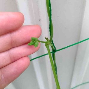 なんか一本だけ元気。1m分のネットはったのにもう超えそう。 他の子たちは成長点枯れ始めた。少しでも採れるといいなぁ~