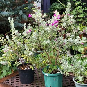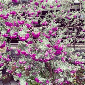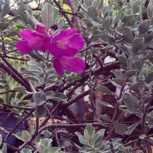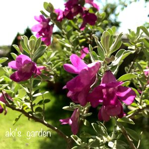 レウコフィルム・フルテスケンス お庭のシンボルツリーです。 9月に満開の時、庭が一気に華やかになります。 花がない時も枝ぶりやシルバーの葉がいい仕事してます(*゚▽゚*)