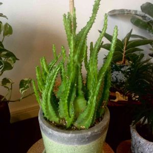 ユーフォルビア フルティコーサ さん✨ 今年は部屋の中でお花が咲いたけど お花の終わりが早かったです・・・😢 お子ちゃまも大きく育って欲しいので 早く外に出してあげたい・・・💦