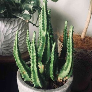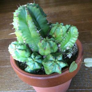 おはようございます☺️ 何気に初ユーフォルビア フルティコーサでございます😅 二週間ほど前にGREEN RABBITさんで見つけて、なんとなく面白い形で、お値段もお安い子でしたので狩ってみましたが、鉢一杯に子吹きしております。 植え替えの時期も方法もまったく不明なので、どうしたものやら💦💦 鉢一杯に子株が密集しているのでどうやって鉢から取り出すのかが最初の課題です😅