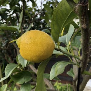今年初めて実になったレモン。本当に寒くなり黄色く色づいたので収穫します。