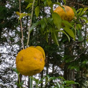 柑橘 .◌𓈒𓆸 お散歩道の柑橘類 直径10cm以上のぶら下がった実は夏みかんかな?🍊 レモンも大きく育って綺麗です🍋✨