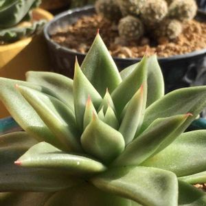 お一人様のカシミアちゃん❤️ 植え替えしたら。。またまた色が変わったね😊✨貴女は周りで守ってあげないと倒れちゃう🍀 葉の付け根が紅くて美しい❤️