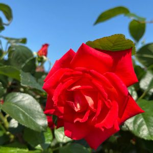 おはようございます 今日はとっても良いお天気☀️ ディープレッド🌹 イタリア🇮🇹山庭園にて