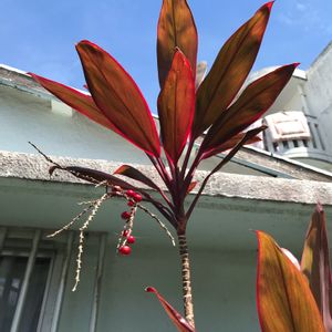 千年木❤️🔴葉っぱも実も撮ってみました。 かか さんの葉っぱも赤いのですよね❤️のコメントいただき全体撮っておきました。感謝💕 昨日の🏷真っ赤な‥と同じ木です。実をつけることが少ないと聞きまして❤️も🔴記念に🖼 今日は朝から蒸し暑くSPニャンズの姿が見えません🐈⬛どこか涼しいとこでお昼寝かも💤 それでか、実が🔴少なくなっている🐦が丁度熟れごろと食べたか、落ちたのか?は謎のままです😅 2021/6/9 沖縄県那覇市首里の自宅にて撮影 お隣の塀から こんにちは😃の木