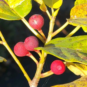 今日のお花に似た… ★イヌビワ(犬枇杷)★ クワ科の落葉低木 花期:4〜5月 果期:10〜11月 別名:ヤマビワ、イタビ、姫枇杷 雌雄異株。花は花嚢の中に隠れて咲く。葉は狭い倒卵形〜長楕円形。 7月の投稿時は、まだ青かったイヌビワの果実が赤くなりました!僅か2cmほどのちっちゃな果実です🤗①② 12月に入り、葉も黃葉してきました③ 2025.11〜12 上野不忍池にて📷️