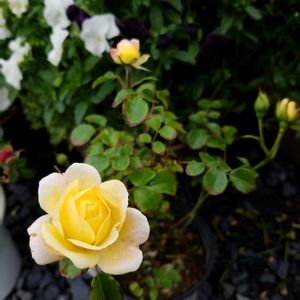 ドリフトローズ🌹 宅配生協の「色おまかせドリフトローズ」なんですが、水枯れの瀕死状態で届いて2週間✨ 返品すると廃棄されるので、お水をあげて半日陰で様子をみていたら、急に芽が出てきました🌱❣️ これは大丈夫っぽい🤗 色おまかせって何色かな😂💓