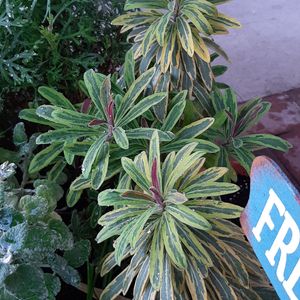 ユーフォルビア・アスコットレインボー🌈✨ 斑入りの葉っぱ🌿がほんとにキレイ😊✨ ヨーロッパ原産だそうです。 オージープランツの寄せ植えに入れてみました♪