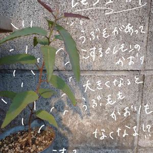 レモンユーカリ。 めちゃくちゃ成長早い。根元が木みたいになってきました 日光大好き傾き過ぎ〜(°▽°) 3月25cmから110cmに成長 伸び過ぎなので 今からカットします。