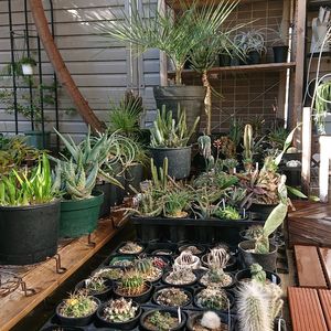 ■プラントハント収穫報告 ~ポチッと&処分品救済編~ 🎌 ユーフォルビア人気選手権開催中 🎌 →22時投票🗳️締切で集計します😉 (ポチッと) ・Jubaea chilensis/チリサケヤシ ・Trachycarpus wagnerianus x Trachycarpus nanus/ワジュロ×ナナス ・Astrophytum capricorne CV thayo/アストロフィツム 瑞鳳玉 ・Eriospermum proliferum/エリオスペルマム プロリフェルム ・Vachellia tortilis(Acacia tortilis)/アカシア・トルティリス (処分品救済) ・Zenobia pulverulenta/ゼノビア ブルベルレンタ(スズランノキ) ・portland/ぶどう ポートランド ※親は「チャンピオン」と「ルテー」。アメリカ原産。 ・Aloe burgersfortensis/ブルゲルスフォルテンシス(鋸葉蘆薈) スズランの木 200円、ポートランド 300円、アロエ 50円×2、植え替え完了。 ヤシ2つは超耐寒でシュロhybの片親はドラゴン ヘッド パームで草丈最大1m程度のドワーフ矮性ヤシなので期待大。エリオスペルマムはこれで3つ目。トルティリスの成木はめちゃくちゃカッコいいですよ😆