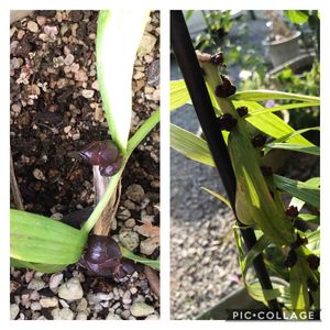 百合の茎にむかごが付きました。 土に落ちたら発芽するかなぁ。🤔