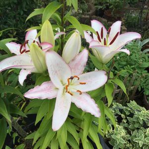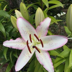 百合 ミレッシモ 白に淡いピンクの縁取りが有ります。