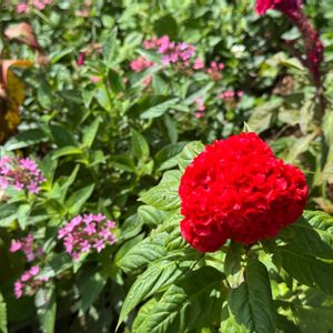 🐔クルメケイトウ(久留米鶏頭) トサカケイトウの花が球状になったような、丸みのある花です。日本で品種改良されたそうです。 ⚫︎ヒユ科 ケイトウ属 ⚫︎原産 インド ⚫︎花期 6月〜10月