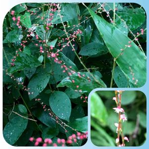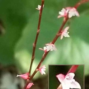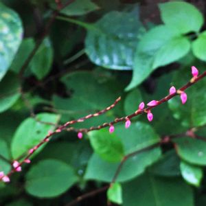 水引草(みずひきそう) パッと見ると赤い花だけど、一つの花に赤と白の2色が入ってて、この花の姿がご祝儀の水引に似ていた事から付けられた名前🌸 *お隣さんの庭で、今撮り*