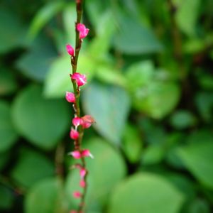 おはようございます☀️ 茎の先に紅い小花を穂状に咲いた水引草 小花がお洒落で可愛い