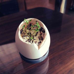 お友だちから 嬉しいプレゼント😊 卵殻の植木鉢🐔 大きさも 触り心地も卵そのもの! でもちゃんと陶器で出来ています😉 可愛すぎて何を植えたらいいか 悩んでしまいます🤔