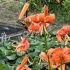おはようございます オニユリ アゲハが訪問 キキョウ白 グロリオーサ 西洋コマクサ トロナス 鉢で育てています 我が家の花達