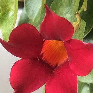 マンデビラ夏ものがたり ルビースター こちらは蔓性でぐんぐん伸びるダディタイプ 大きなお花で暑さにも強いのでお庭のアーチやフェンスに植えたら華やかだろうなぁ〜 庭のない我が家にはちょっと小柄なマミータイプかキッズタイプかな 花びらの形が鉄腕アトムのヘアスタイルみたいでかわいいです💕 すみません一枚ダブって投稿されていました なぜだろう??? 一つ削除させてもらいました いいね👍くださった方すみません