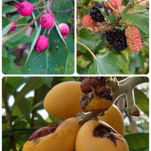 おはようございます☀︎*.。 今 庭で収穫できる果実です 赤から黒くなると食べ頃の桑の実 (スィートマルベリー) 枇杷は鳥さん達へお裾分け 残ったのを頂きました 🤗