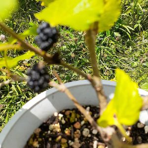 似た果実をピックアップしました。 左側の上下がブラックベリー、右側の上下がマルベリーです。 ブラックベリーは上がシャーロンズデライト、下がプライムアークフリーダム。 マルベリーは上が雲南マルベリーを中心にシャルロットリュスとスィートマルベリーも混ざっています、下は全てカタネオです。 マルベリーはドライフルーツに向いた品種と生食に向いた品種があるようで、カタネオは果実が締まっていて水分含有量が少なくジューシーさが少ないためドライ向けだと思います。 見た目で分かりますが上のマルベリーは実の一粒一粒にハリとツヤがあり、生食でジューシーで美味しいです。