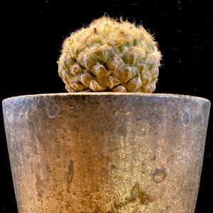 Pelecyphora strobiliformis 銀牡丹 (実生短毛丸接ぎ) mugicoさんの金彩3号鉢に植え替えしました🤗 W=43