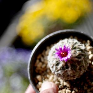 Pelecyphora strobiliformis 銀牡丹開花ぁ〜wU^ェ^U 今度はフェンスのビオラで玉bokeh作ったよ👍 2輪目の開花です🤗