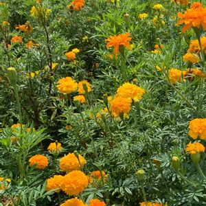 お散歩コースのお花達です〜!💐 マリーゴールドが群生していました。🥰💐 見事です〜!🥰💐🥰