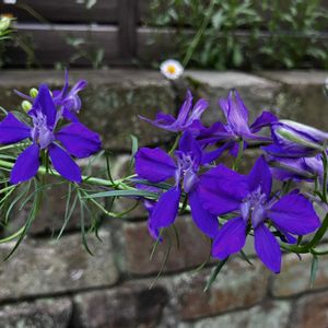 畑と空き地の境目辺りに、見慣れない植物を見つけたのでうちに連れてきて手入れしていたら花が咲いた。 50㌢くらいの草丈に距のある紫の花が咲いた。コレは雑草ではなさそうと、調べてみたら千鳥草と出た。 綺麗な花だ。零れ種から増えるといいな💓 それにしても、どうやって畑横に一本だけ生えたのだろう?周りを見回しても他には生えていないの不思議?