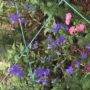 千鳥草 ラークスパー こぼれ種で毎年咲きます🎵 でも気を抜くととんでもないところに芽がでて広がってしまうので、他の植物と混じらないところに制限。 そのせいでピンクの八重が消えてしまいました😅