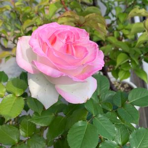 *プリンセスドゥモナコ* 1982年にグレース公妃に捧げられた二つ目のバラです。(一つ目はグレースドゥモナコ) このバラはグレース公妃が第一回モナコ国際バラ会議に際し個人的に選んだものです。 作出したメイアンはこの新しい品種に(プレファランス)という名前をつけようとしました。でも審査委員長の公妃は一目見てこのバラに恋してしまい自分に捧げて欲しいとお願いしたのです。願いはすぐに受け入れられました。 本当に悲しい事に公妃は翌年自動車事故で旅立ってしまいます。 このバラに生前に出会っていた事を知ることは、バラを愛するものにとって、せめてものなぐさめになるでしょう。 このバラの花姿は本当にゴージャスでなおかつその明るいピンクと白の色合いは上品で優しい印象を与えます。 遠く別世界のアメリカの映画界からやってきたプリンセスが今なお尊敬される存在であることを象徴するかのようです。 篠宮バラ園スタッフS写し