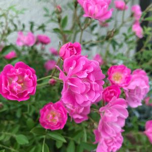 暖かくなり一気咲き初めたよ🌹 お友達から頂き挿木で大きくなりましたが名前が分からないまま育ててました😅