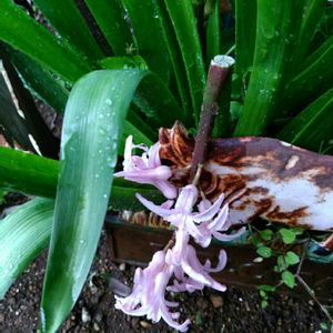 前回📷投稿したヒヤシンスとは別の場所に植えてある 💠ヒヤシンス💠 10年位は 経っている・なので💠花付きはあまり いいとは言えないのだが… 🌱草むしりの際 私のお尻で🔨ポキッとなってしまった・・ でも 😲見て~😲すごい👀凄い こんなんなっても 💠花が咲いてる〰。