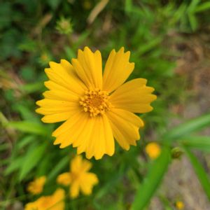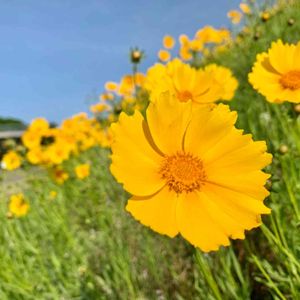 💛オオキンケイギク キク科 (☆特定外来植物指定) コスモスに似た形状で、とっても初夏に合う花です明るくなりますが、、、 あまり増やしちゃうと問題なのですネ〰️
