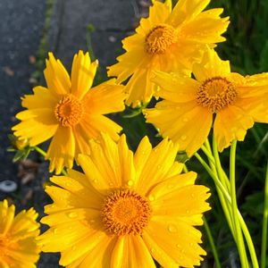 朝の散歩道 ウォーキングの通り道に、 オオキンケイギクが、朝露に濡れてキラキラして綺麗でした。
