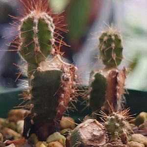 昨年5月に播種したくるくる回る柱サボテン(まだ全く回ってないけど😅)春にひと鉢 見事に枯れてる位酷い葉焼けをさせてしまったのでダメ元で4月にカット✂ 無事に子株復活もうひと鉢の子達は無事😄