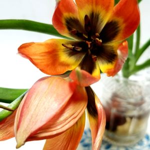 まだ蕾やったのに チョキン✂と切られてもたので 飾ることにした ミニチューリップ。 なんとか開花。 犯人には強く抗議しました。