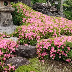 ~ ト🌺コの庭シリーズ ~ 義妹の花園‼️ 築山の石の小径を上がり、サツキの色に身を任せつつ右奥の石橋へと安らぎの旅に💟