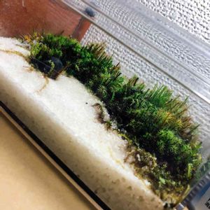 オープンテラリウムでグズグズにしてしまったシノブゴケ、一部を枯山水テラリウムに入れておいたらすくすく成長してちゃんとシノブゴケっぽくなってる😳 カサゴケはずっとこんな感じの色なんだけど生きてるか死んでるか分からない…。カサゴケ難しい…