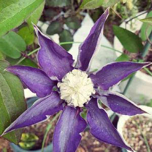 おはようございます😊 クレマチス🎵 蕾は次々出来ても なかなか開花せず このこが 一番花になりました💕 一重? 八重?