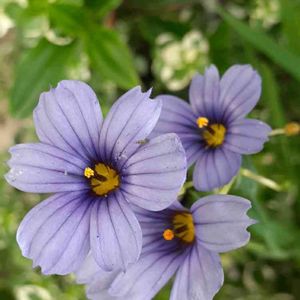 おはようございます😊 ニワゼキショウが咲きました🎵 もっと濃いブルーなのに~💙