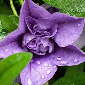こんにちは😃 クレマチス 開き始めました🎵 たくましいツルが どんどん延びるのになかなか蕾がつかず 心配していました💦 品種ラベルもなく 全くどんなお花か思い出せませんでしたが どうやら 八重咲のようです💕