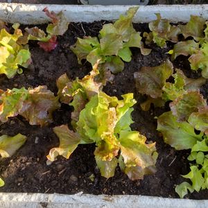 冬野菜始めました。 ダイソーのサニーレタス 外葉2回摘みました。春先とう立ちするまで活躍してもらいます。玉ねぎの間引きやブロッコリー、他準備中です。😃☺️