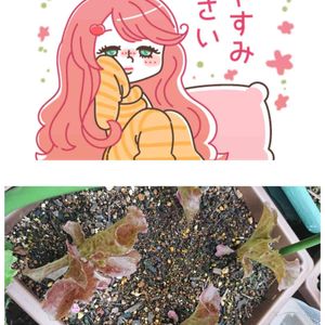 今年もおばあちゃんがサニーレタスの種を蒔いたよ😊これ、撒いてから1週間後の様子🌱 発芽するの早っ‼️ もう間引きのタイミング⁉️ 小さくてかわいい芽😍🌱 天国のおじいちゃんが15年前に買った種らしい🙄種に賞味期限ってないのーー笑 大丈夫なのかしら? でも去年のサニーレタスも14年前のこの種から育ったやつだったらしい。 普通に大きく育ってたわ‼️普通に食べてたわ‼️笑 大きくなぁれっ♡ こーやって多肉ちゃんの葉挿しをやってる方、まめというか、器用というか、すごいなーって思ってたけど、おばあちゃん👵に頼めばやってくれるかも(⁎⁍̴̆Ɛ⁍̴̆⁎)って密かに思ったよね〜。 今日から秋が来た🍂🍁ひとまず多肉ちゃんたちの遮光ネットを替えて、遮光率を下げた‼️ 毎日直射日光に当てる時間を少しずつ増やしていくぞ♡ とか言って、毎日は行けないからこれまたおばあちゃん頼みです👵 焼けさせないようにお水を切りすぎてないこがいないようにしなくちゃ💦 秋が来たんだけどね、多肉棚の温度計を昼間に見たら30度だった(゚∀゚)アッチッチ! 寒暖差バッチリ🤣