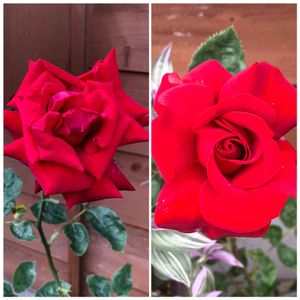 主人とお花屋さんに行って主人が選んだ薔薇🌹 【レッドクイーン】 向かって右が咲き始め 左が今、咲いている様子です。 もう、だいぶ長く咲いてくれているのでおしまいに近いようです😊 いろんな色の薔薇も素敵だけど、赤い色の薔薇が薔薇らしくて良いなぁ〜と言ってました。 きれいです💕